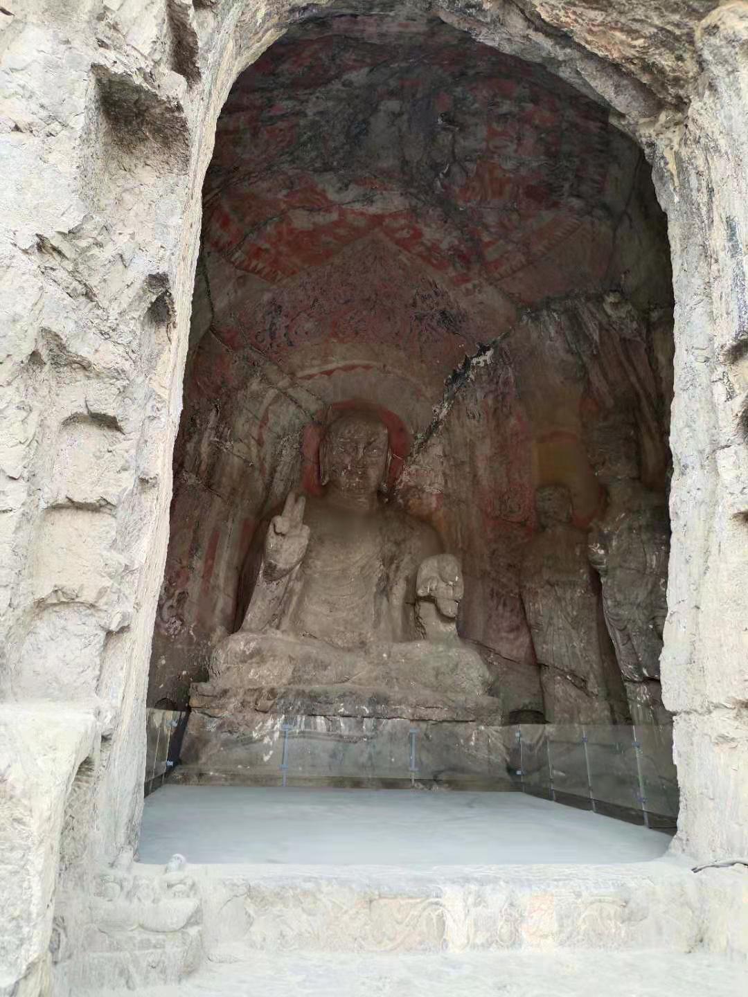 下午,我們又來到了洛陽龍門石窟,只見在堅硬的石壁上,隨處可見一個個小佛龕,那里面的小佛像雖然很小,甚至微不足道,但面部表情卻非常逼真完美!最小的只有兩厘米高,在蓮花洞內(nèi),就如一根手指頭那么大小,但是一樣的小巧精致,那么多的小佛龕足見古時候的工匠們付出了多少的辛勞!