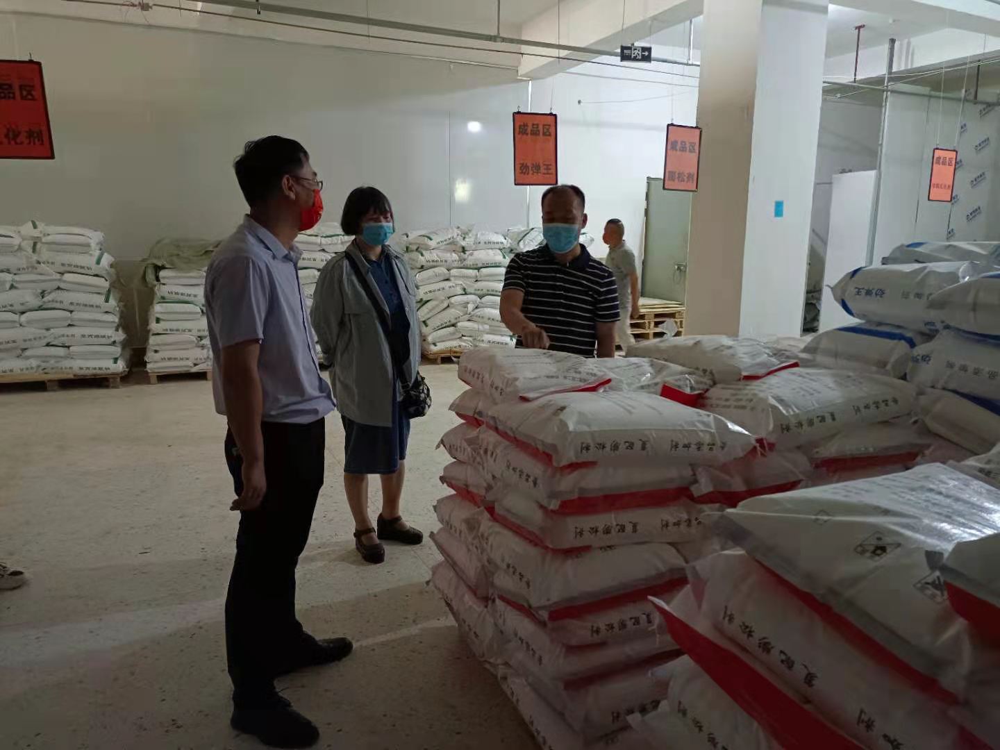 在生產(chǎn)車間,領(lǐng)導(dǎo)們詢問了生產(chǎn)量,生產(chǎn)工藝等等,還關(guān)心了聚丙烯酸鈉,復(fù)配乳化劑,復(fù)配水分保持增稠劑等生產(chǎn)細(xì)節(jié)問題,面對成品區(qū)一垛垛,一桶桶的貨物,領(lǐng)導(dǎo)們對德惠源的產(chǎn)品標(biāo)準(zhǔn)與業(yè)務(wù)范圍表示了高度肯定。