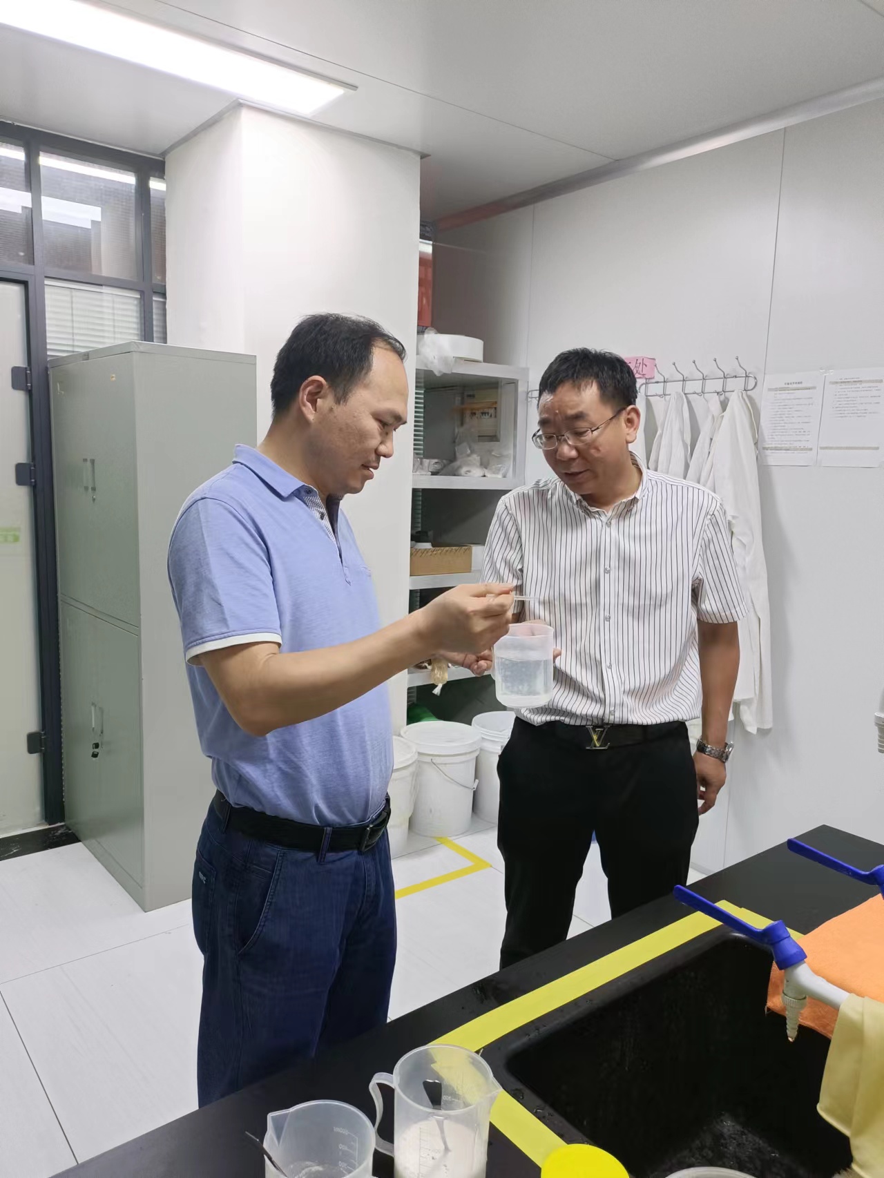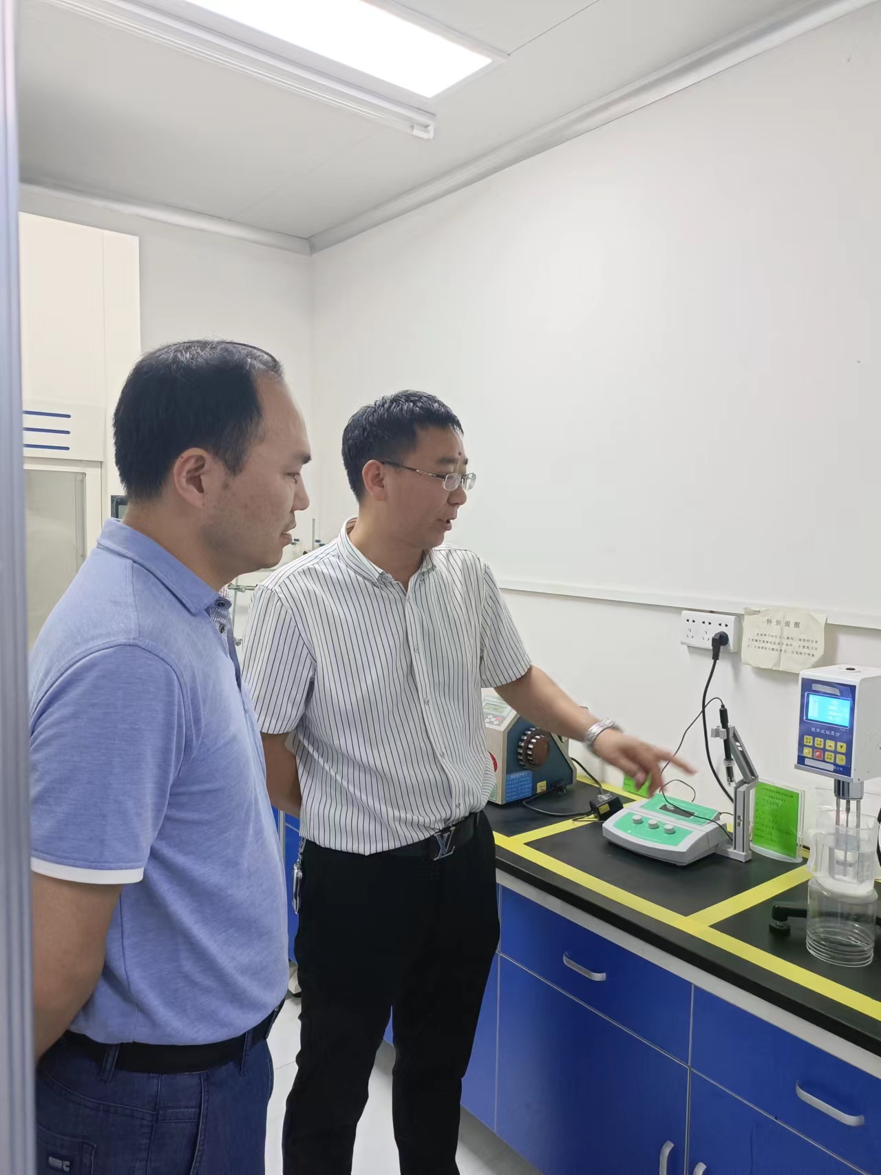 在實(shí)驗(yàn)室里,公司研發(fā)人員介紹了食品級(jí)聚丙烯酸鈉的高粘性和吸濕性,以及乳化劑的高效保水性和耐熱性等,胡總表示了贊賞。